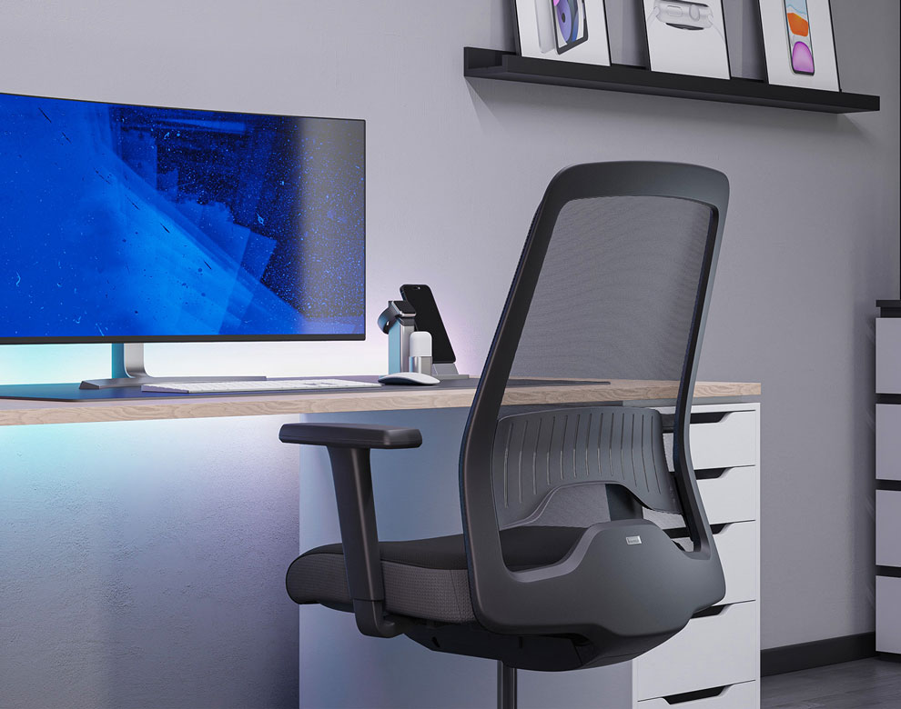 Für das EVERY Aktionsmodell mit Netzrücken werden hochwertige Stoffe in schwarz und grau mit einem atmungsaktiven Netz kombiniert.